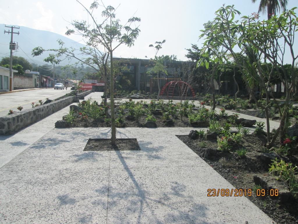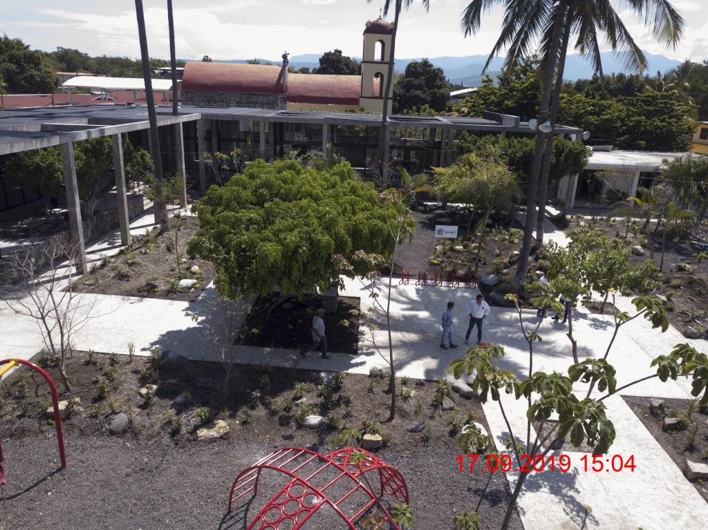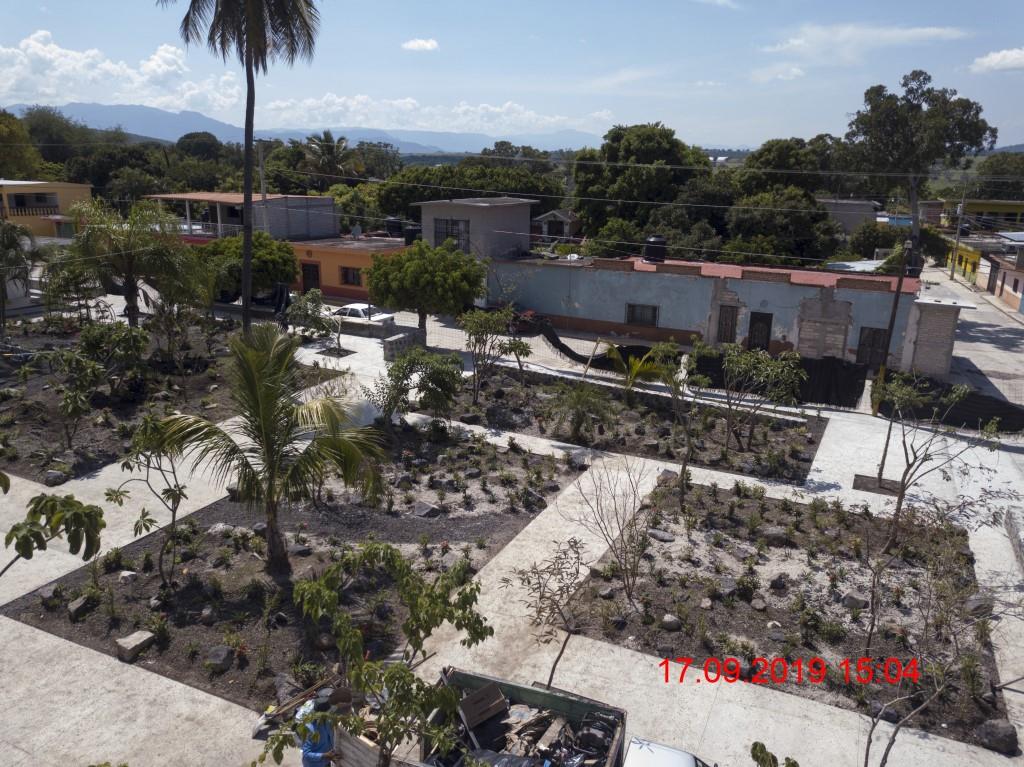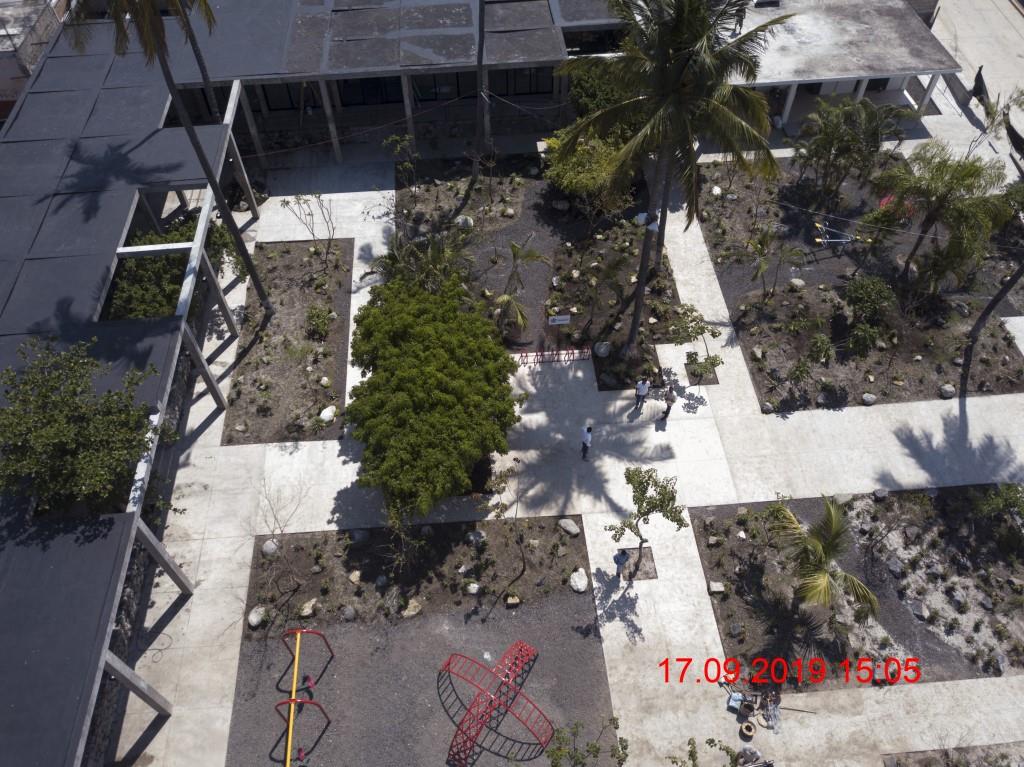 Memoria fotográfica del Proyecto Plaza Central El Higuerón, despues del sismo del 19 de septiembre de 2017, avance de las obras de remodelación al mes de agosto-septiembre de 2019.